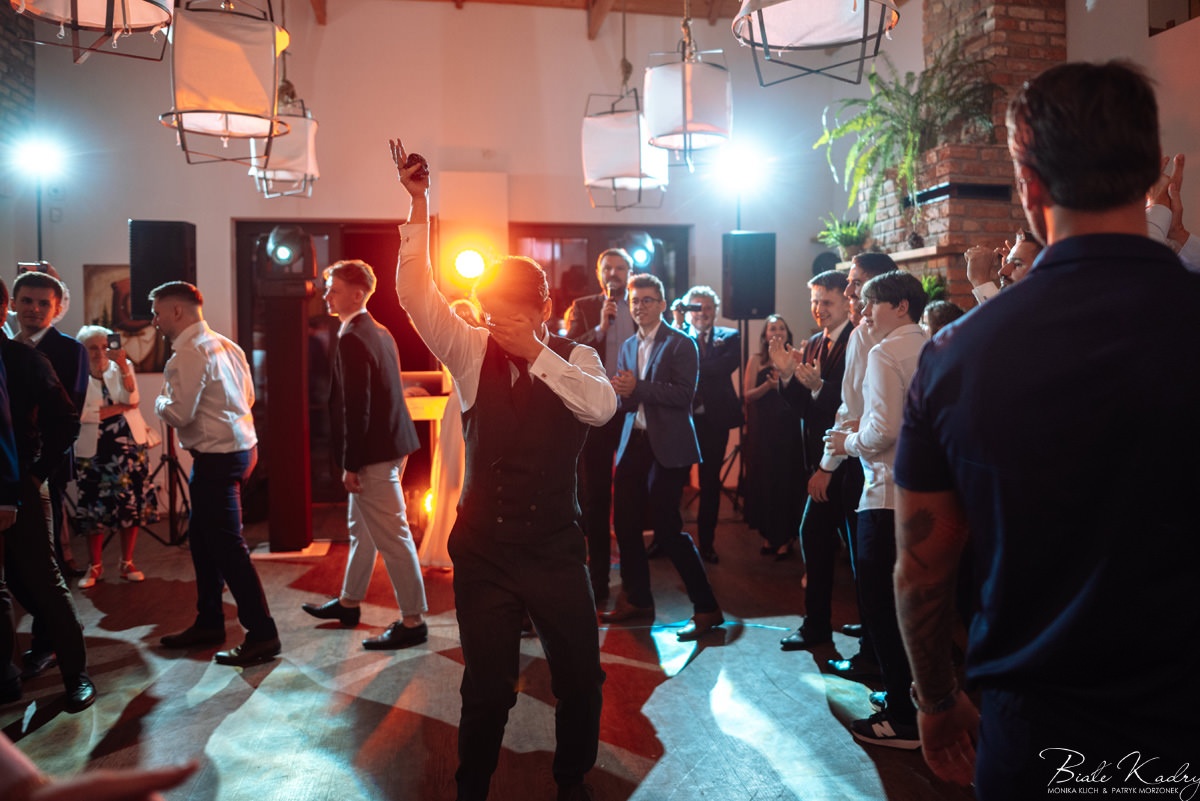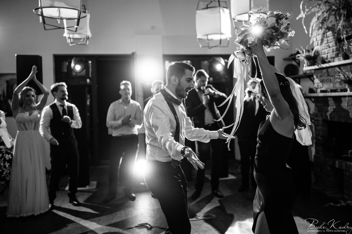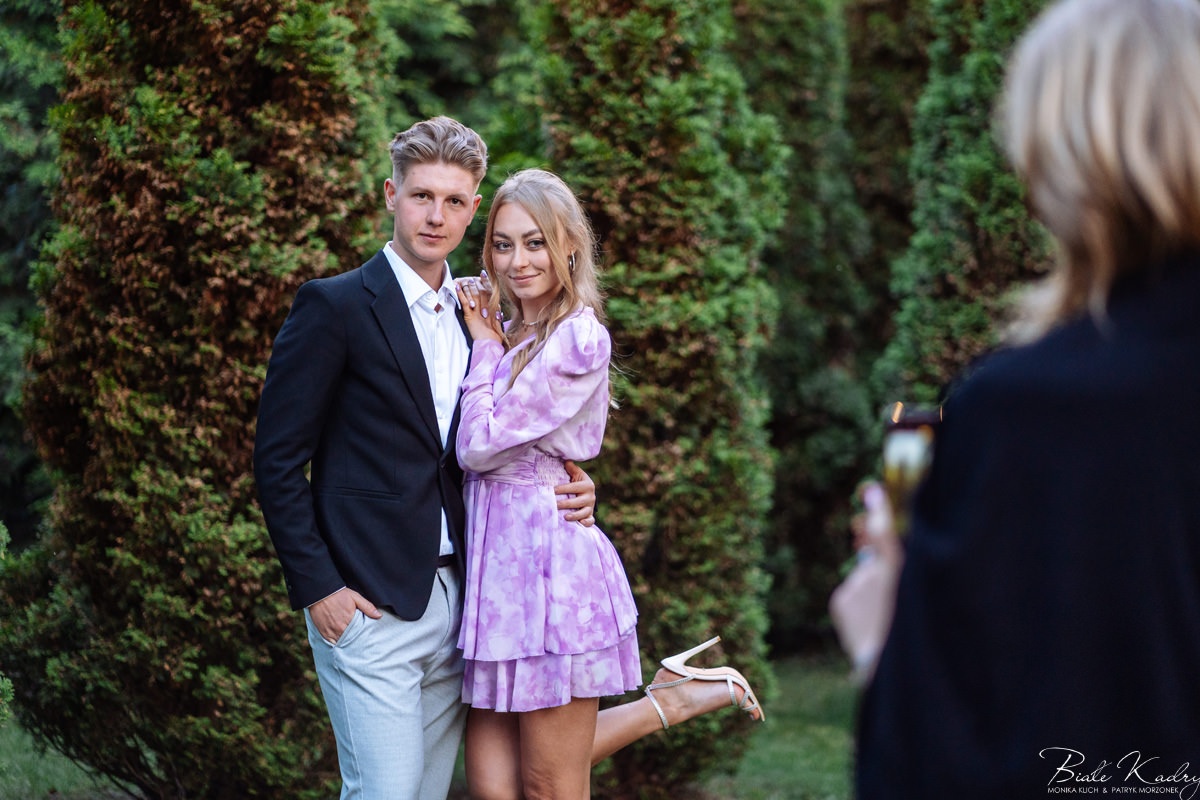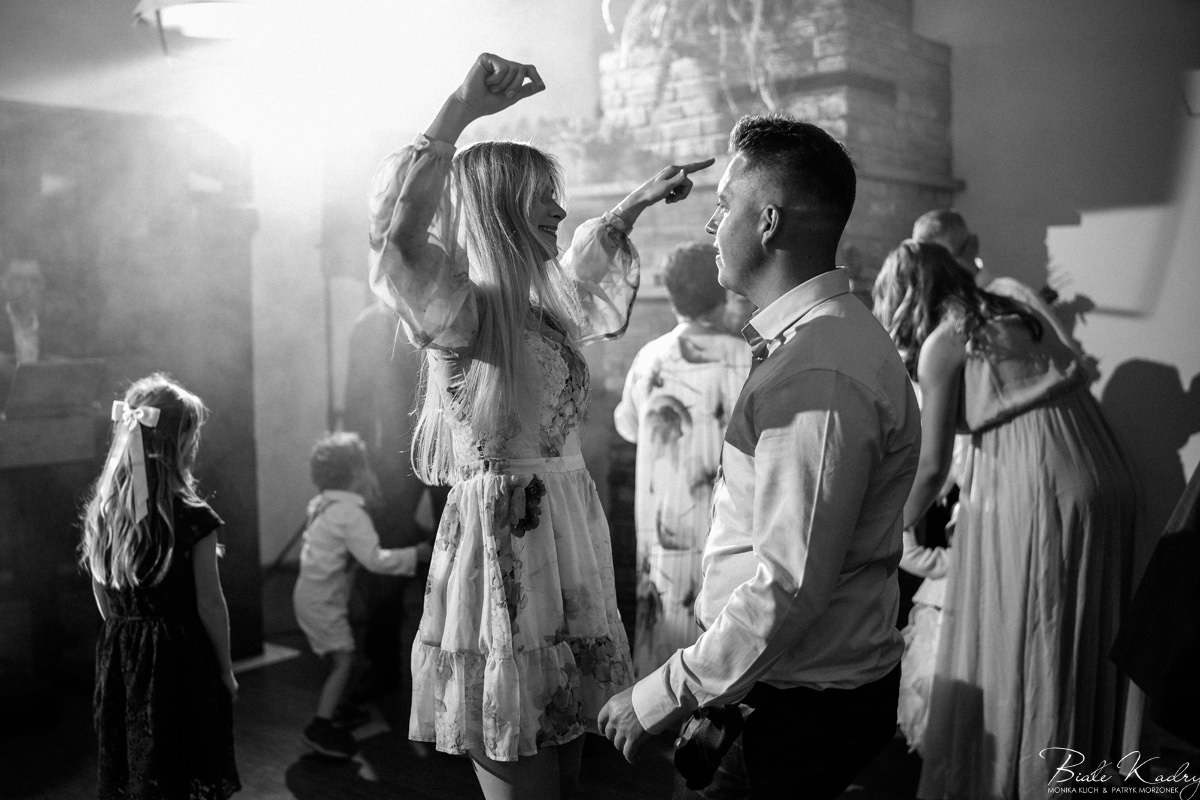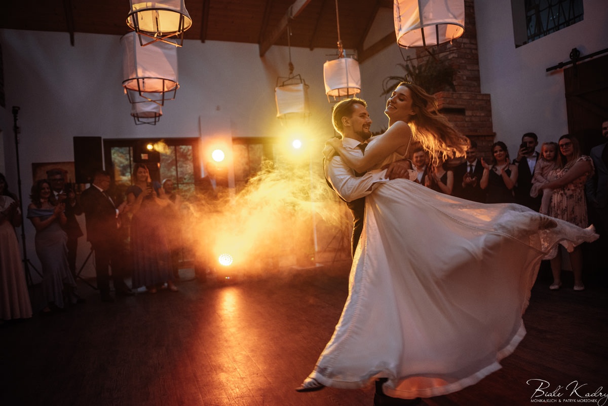 Kulinarna strona wesela to mistrzostwo – kreatywne przekąski i smaczne dania zachwycają zarówno smakiem, jak i artystycznym podaniem. Obsługa jest na najwyższym poziomie – uśmiechnięta, profesjonalna i zawsze gotowa, by spełnić oczekiwania Gości. Sala weselna jest pięknie zaaranżowana, z dbałością o najmniejsze detale, a oświetlenie i dekoracje tworzą magiczny nastrój.  Parkiet zachęca do tańca do białego rana, a muzyka w połączeniu z niezwykłą atmosferą sprawia, że nikt nie chce opuszczać tego miejsca. Ogromnie podoba nam się również rozwiązanie z miejscem przed salą weselną i miejscem ze stołami: Goście weselni mogą miło spędzić czas w strefie z leżakami, pośród drzew.