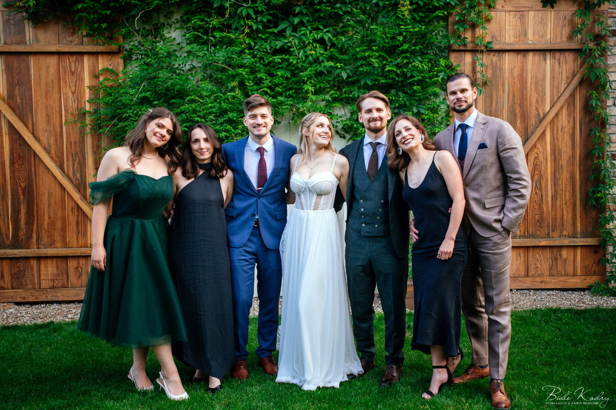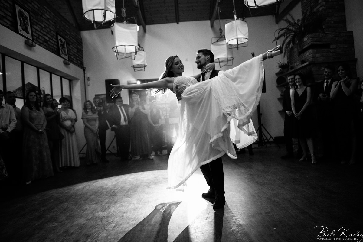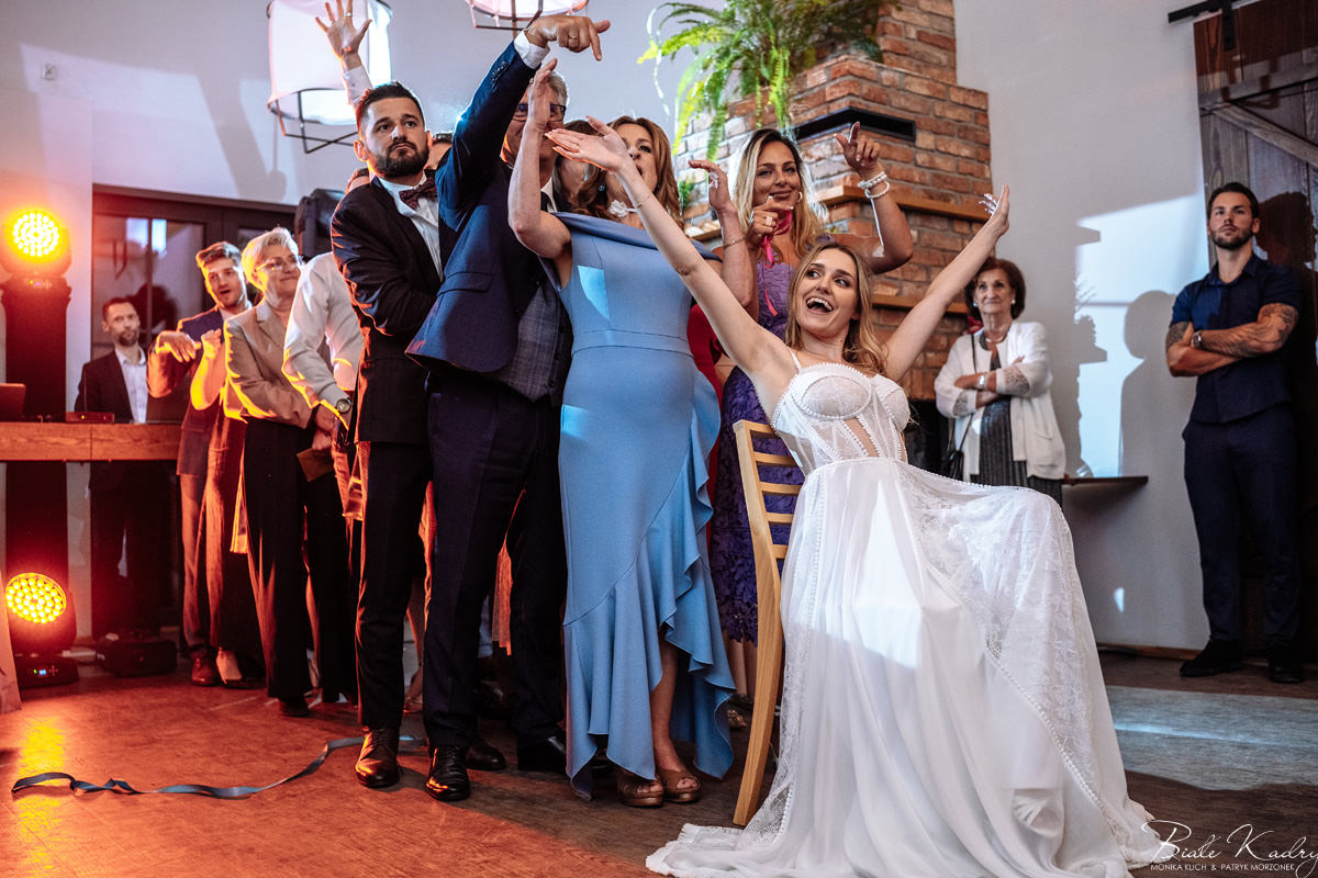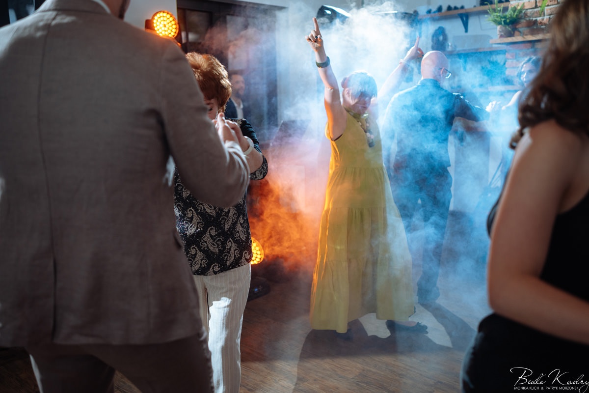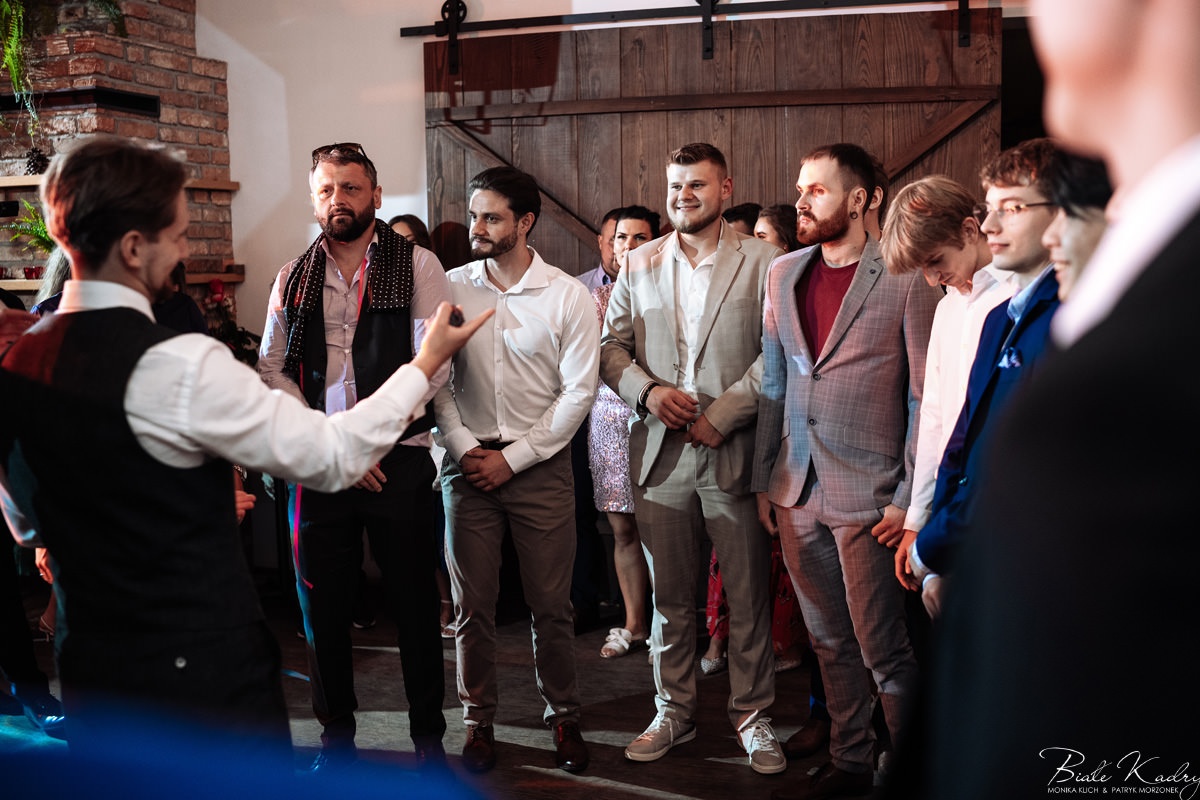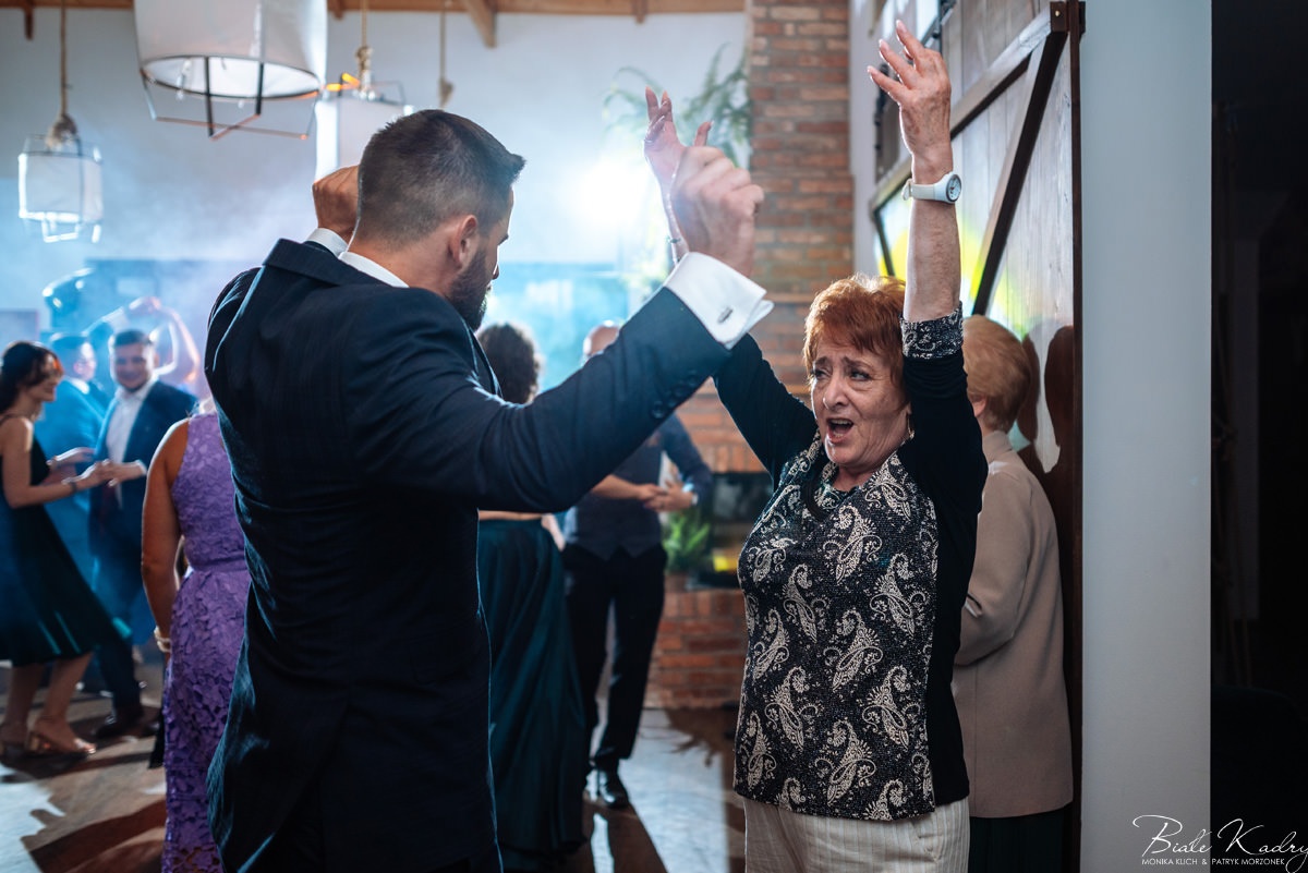 Kulinarna strona wesela to mistrzostwo – kreatywne przekąski i smaczne dania zachwycają zarówno smakiem, jak i artystycznym podaniem. Obsługa jest na najwyższym poziomie – uśmiechnięta, profesjonalna i zawsze gotowa, by spełnić oczekiwania Gości. Sala weselna jest pięknie zaaranżowana, z dbałością o najmniejsze detale, a oświetlenie i dekoracje tworzą magiczny nastrój.  Parkiet zachęca do tańca do białego rana, a muzyka w połączeniu z niezwykłą atmosferą sprawia, że nikt nie chce opuszczać tego miejsca. Ogromnie podoba nam się również rozwiązanie z miejscem przed salą weselną i miejscem ze stołami: Goście weselni mogą miło spędzić czas w strefie z leżakami, pośród drzew.