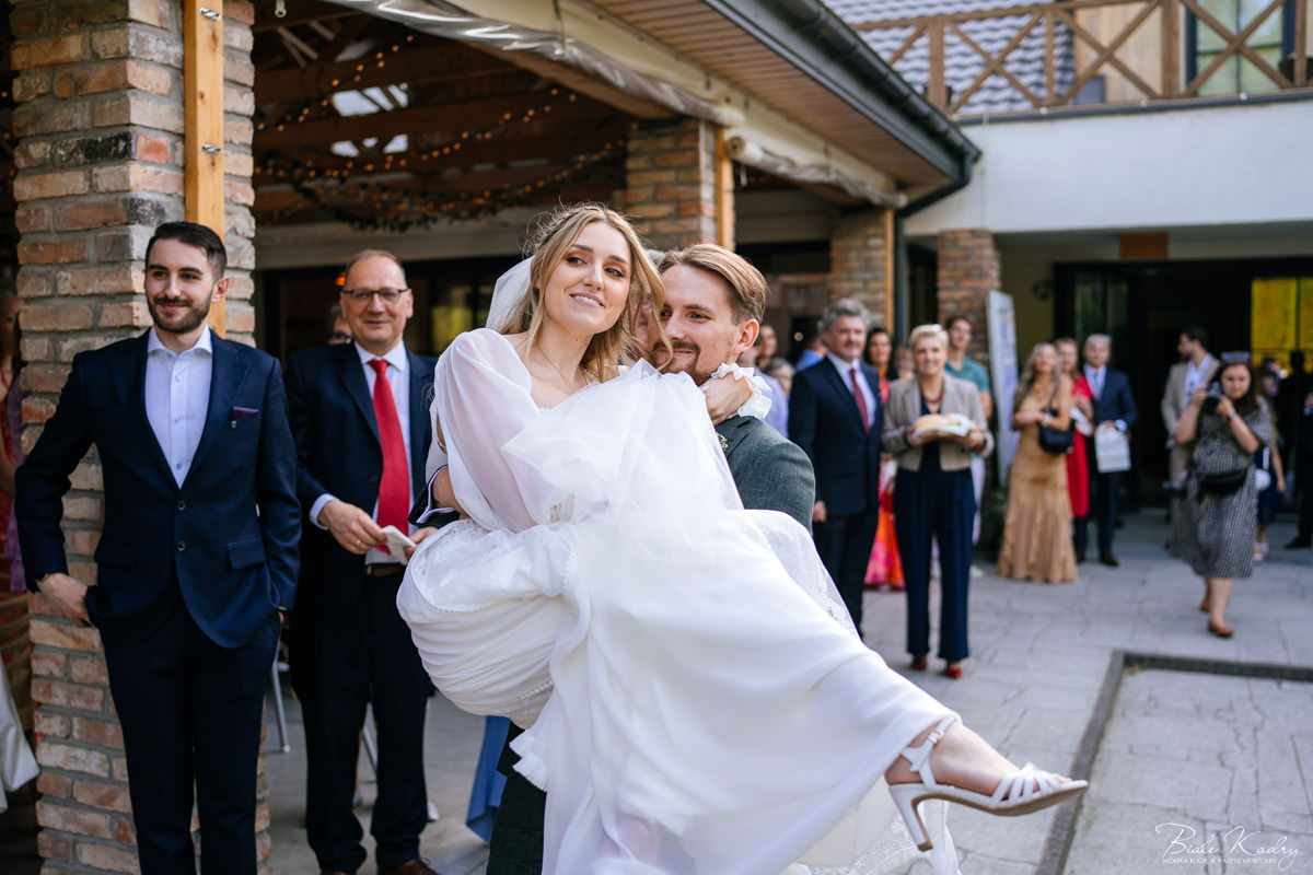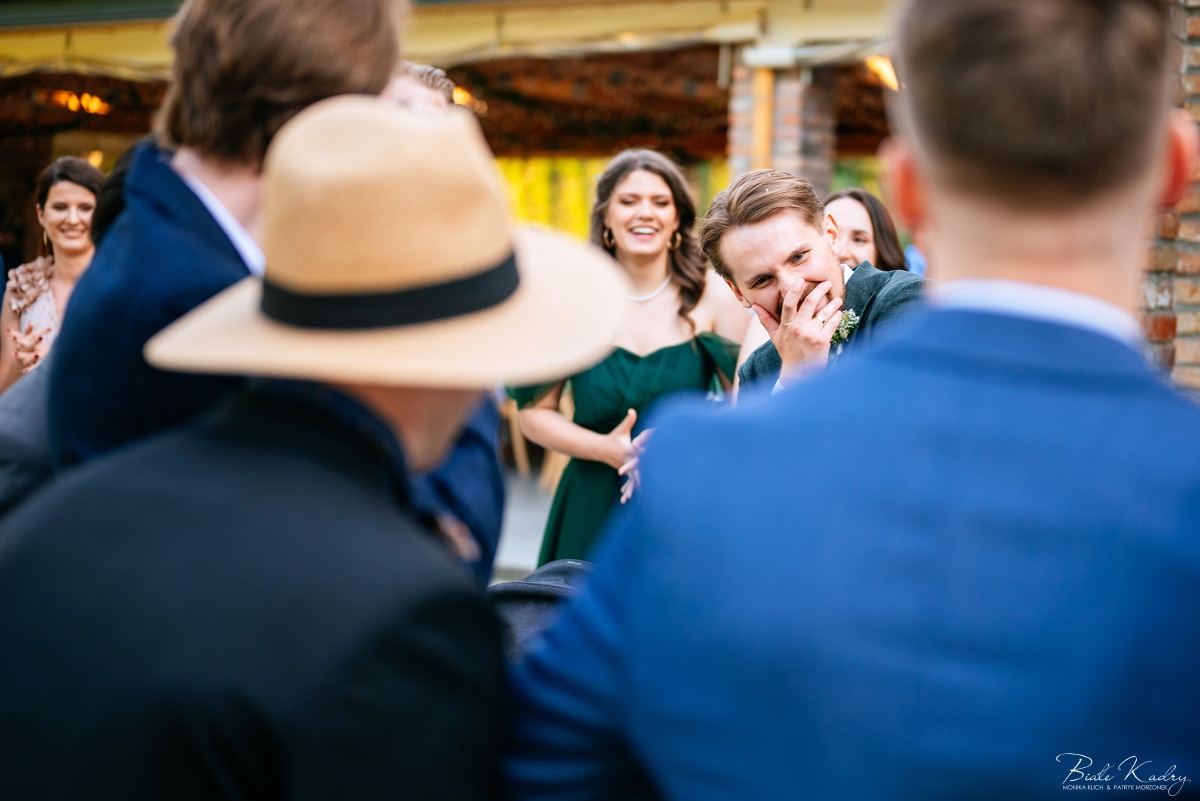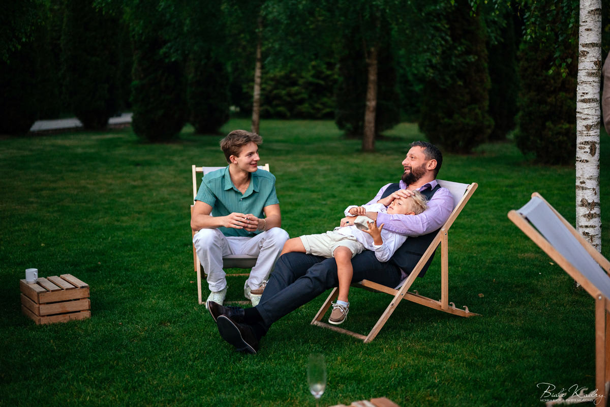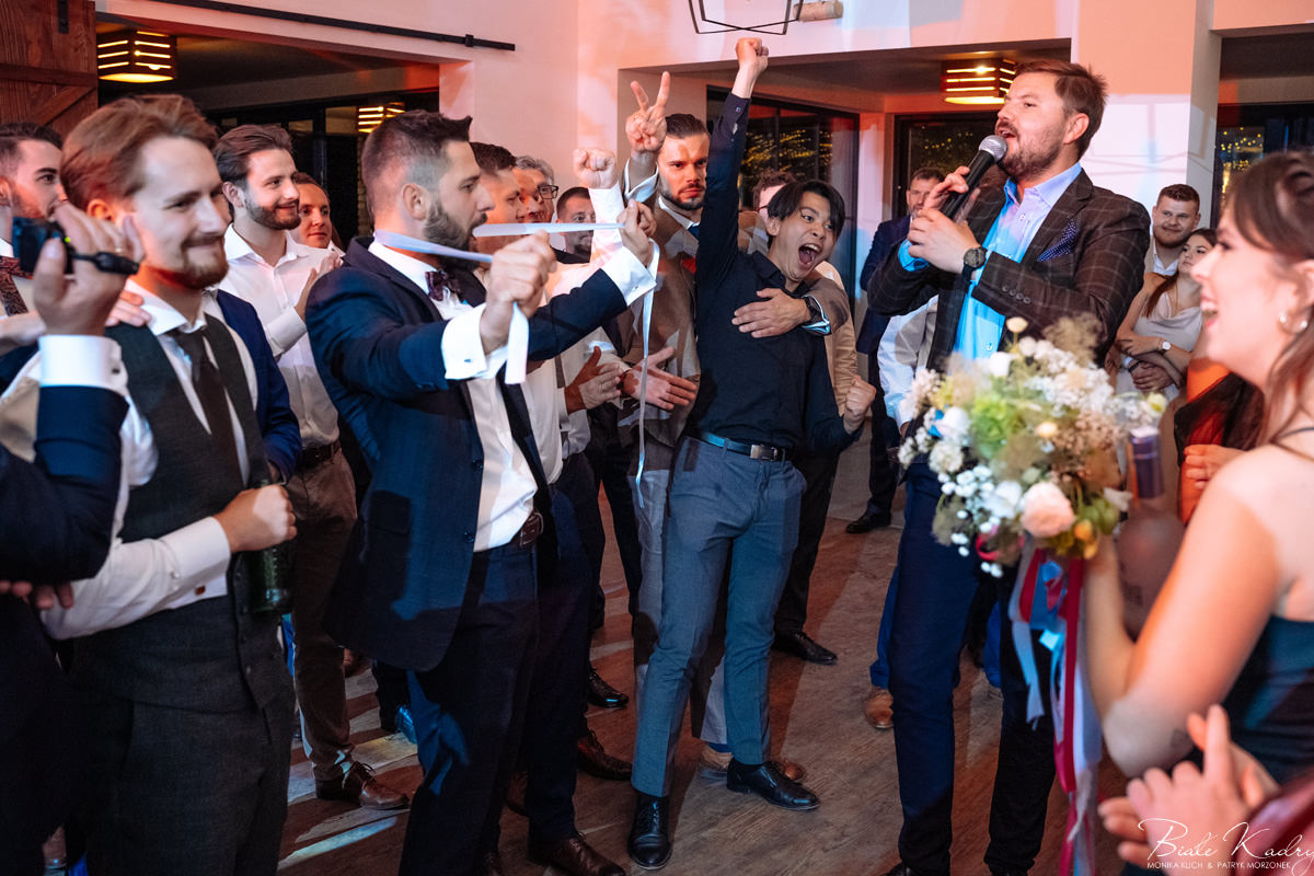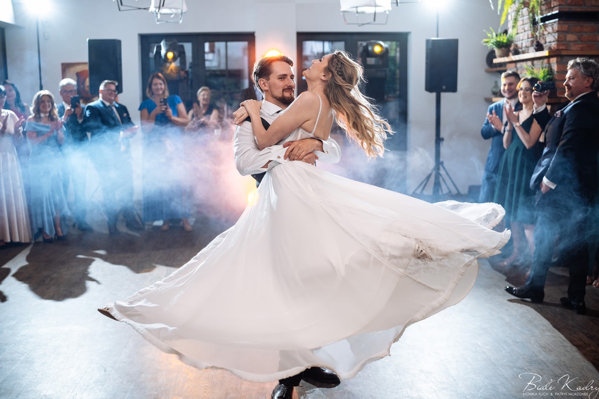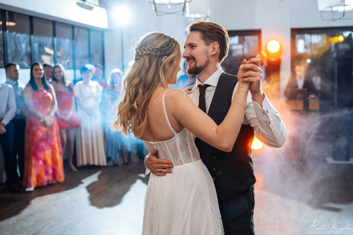 Kulinarna strona wesela to mistrzostwo – kreatywne przekąski i smaczne dania zachwycają zarówno smakiem, jak i artystycznym podaniem. Obsługa jest na najwyższym poziomie – uśmiechnięta, profesjonalna i zawsze gotowa, by spełnić oczekiwania Gości. Sala weselna jest pięknie zaaranżowana, z dbałością o najmniejsze detale, a oświetlenie i dekoracje tworzą magiczny nastrój.  Parkiet zachęca do tańca do białego rana, a muzyka w połączeniu z niezwykłą atmosferą sprawia, że nikt nie chce opuszczać tego miejsca. Ogromnie podoba nam się również rozwiązanie z miejscem przed salą weselną i miejscem ze stołami: Goście weselni mogą miło spędzić czas w strefie z leżakami, pośród drzew.